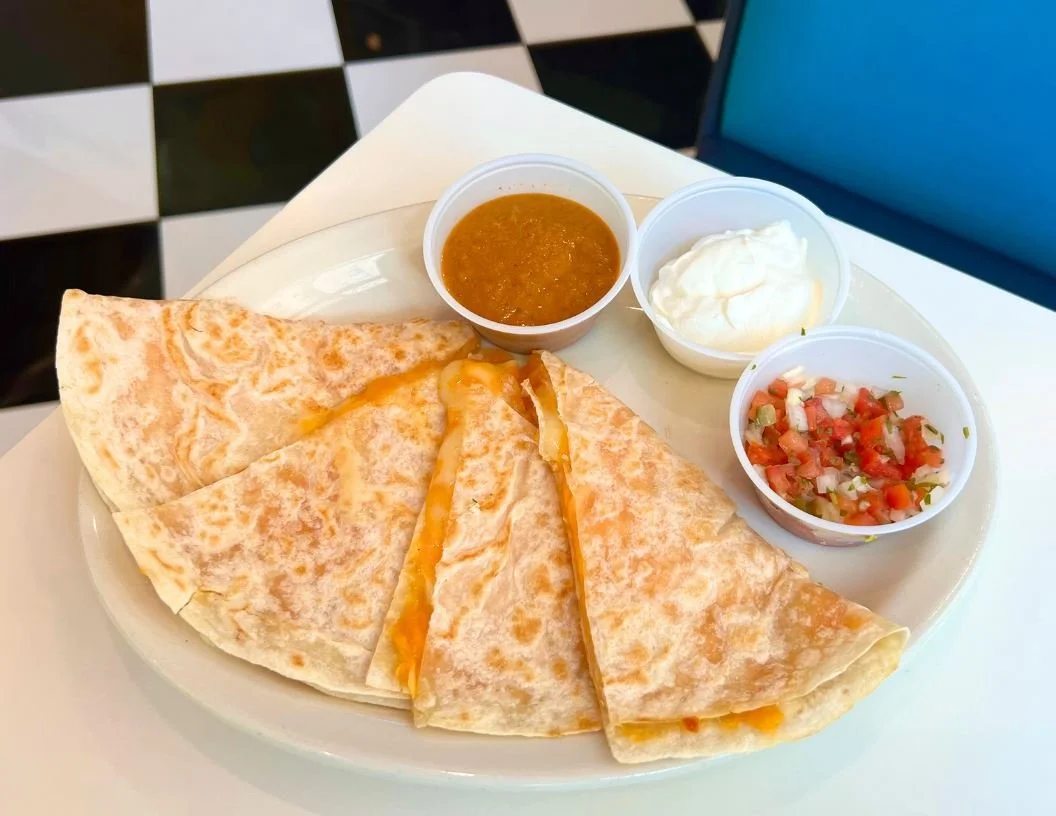 Come taste our new "Quesadilla” Vegetarian, a cheesy marvel that combines cheddar and Monterrey jack cheeses with zesty tomatillo salsa and a sprinkle of our famous Atomic Mix. It's a fiesta on a plate, perfect for those who crave flavor with a kick.