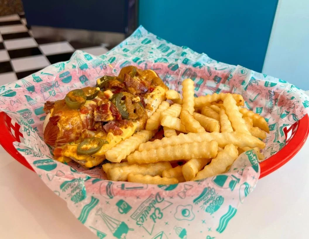 For those who like it hot, the "Atomic Dog" is a must-try. Loaded with tomatillo salsa, gooey cheese sauce, crispy bacon bits, and a fiery kick from jalapenos, this ain't your average hot dog—it's a flavor explosion!