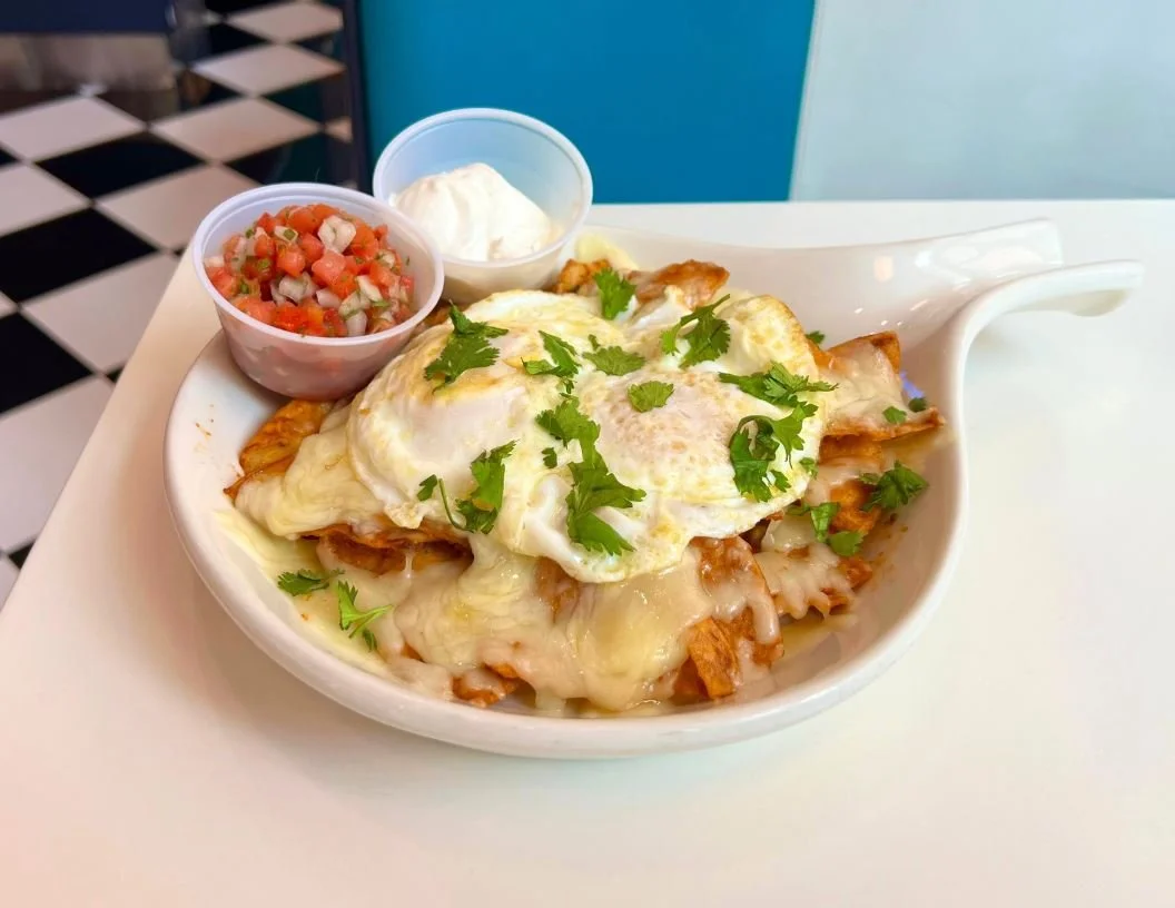 Take a trip south of the border with our Chilaquiles, a comforting dish of crispy corn tortilla chips bathed in savory tomatillo salsa and melted Monterey jack cheese. Topped with your choice of eggs*, a dollop of sour cream, and a sprinkle of cilantro, it's a brunch favorite that satisfies every time.